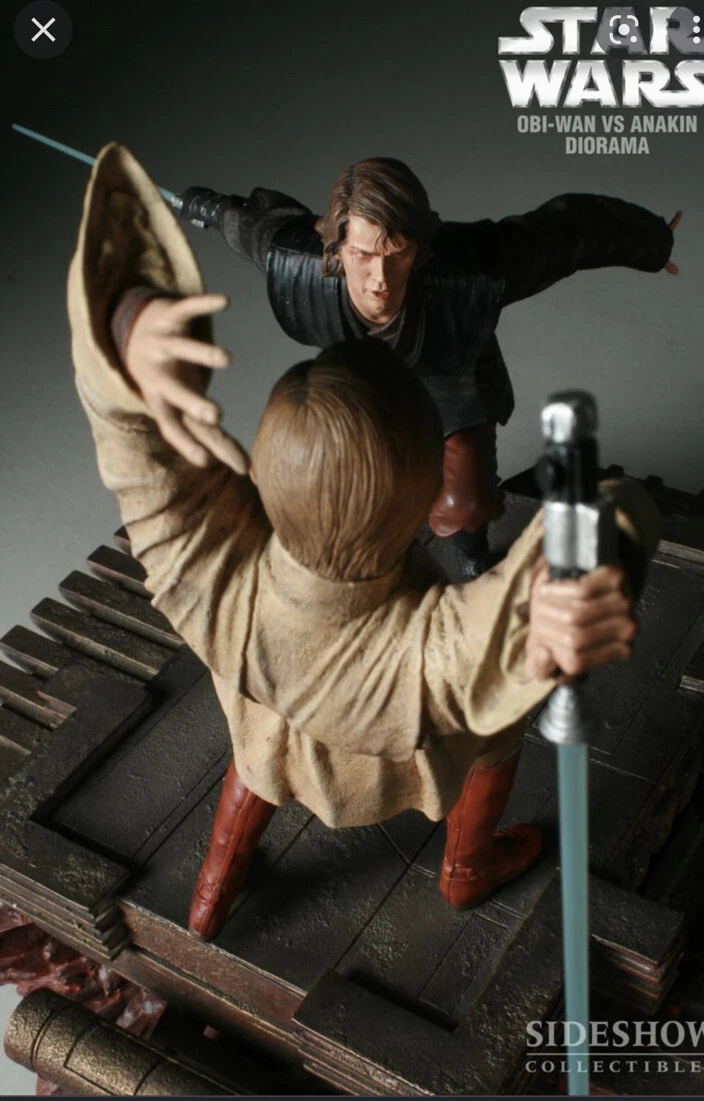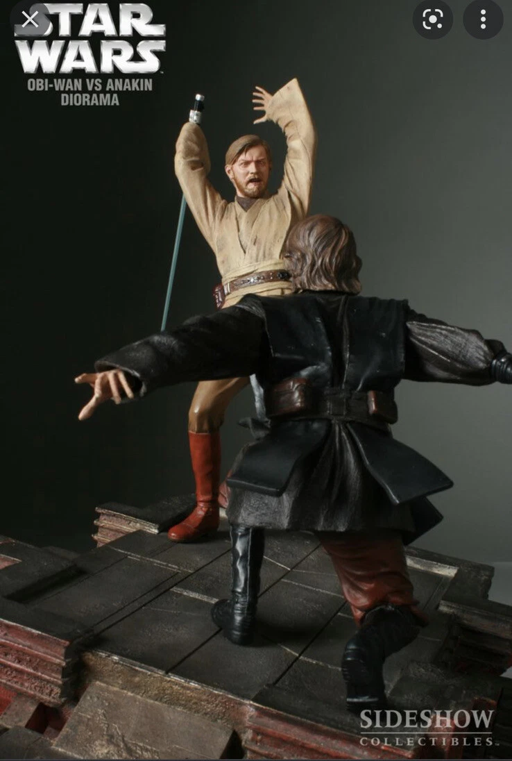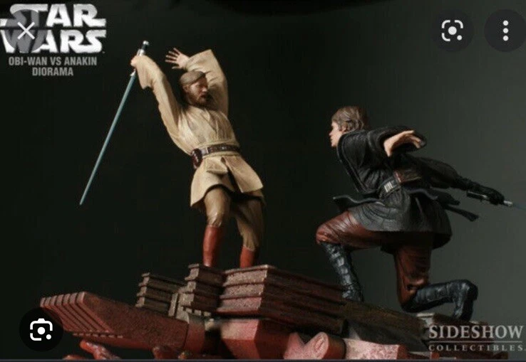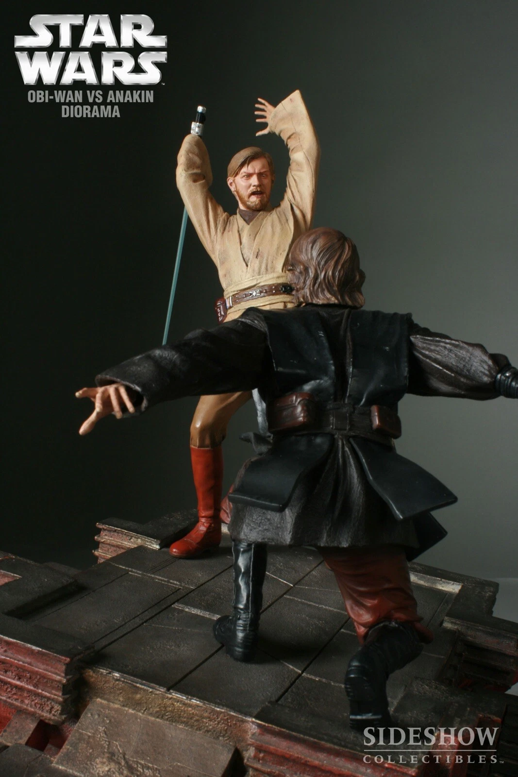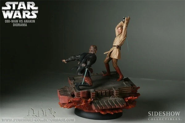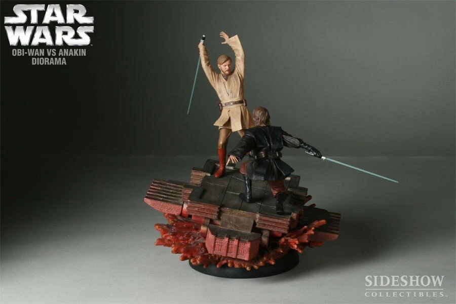 La pieza captura un momento crucial, justo cuando Anakin salta a bordo de la plataforma flotante, obligándola a precipitarse en la lava de abajo.